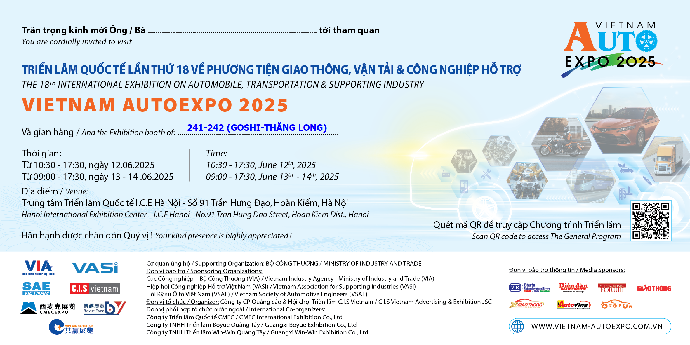 Từ ngày 12/6/2025 (Thứ Năm) đến 14/6/2025 (Thứ Bảy), GTA sẽ tham dự và giới thiệu sản phẩm tại Vietnam AutoExpo 2025.