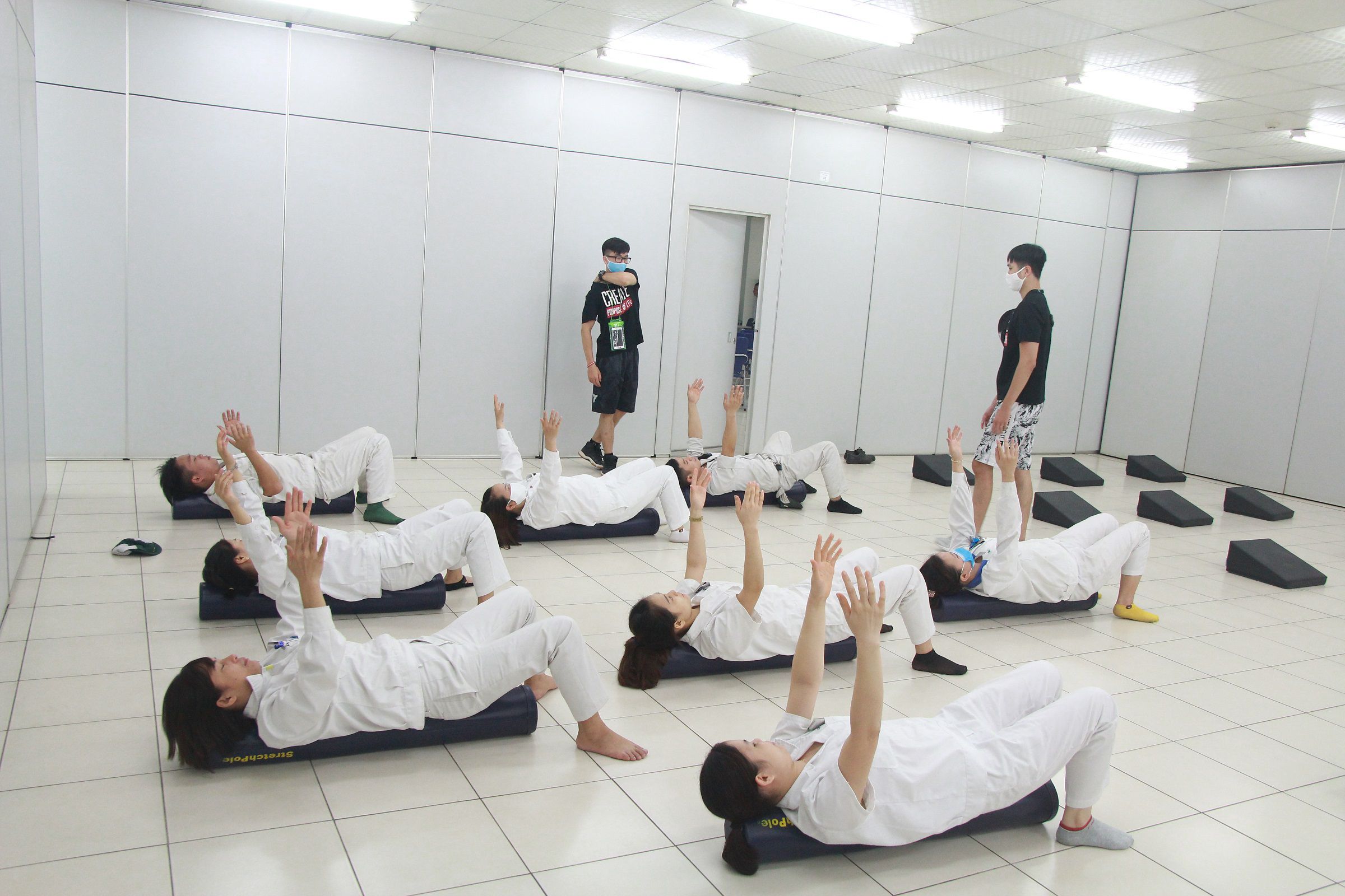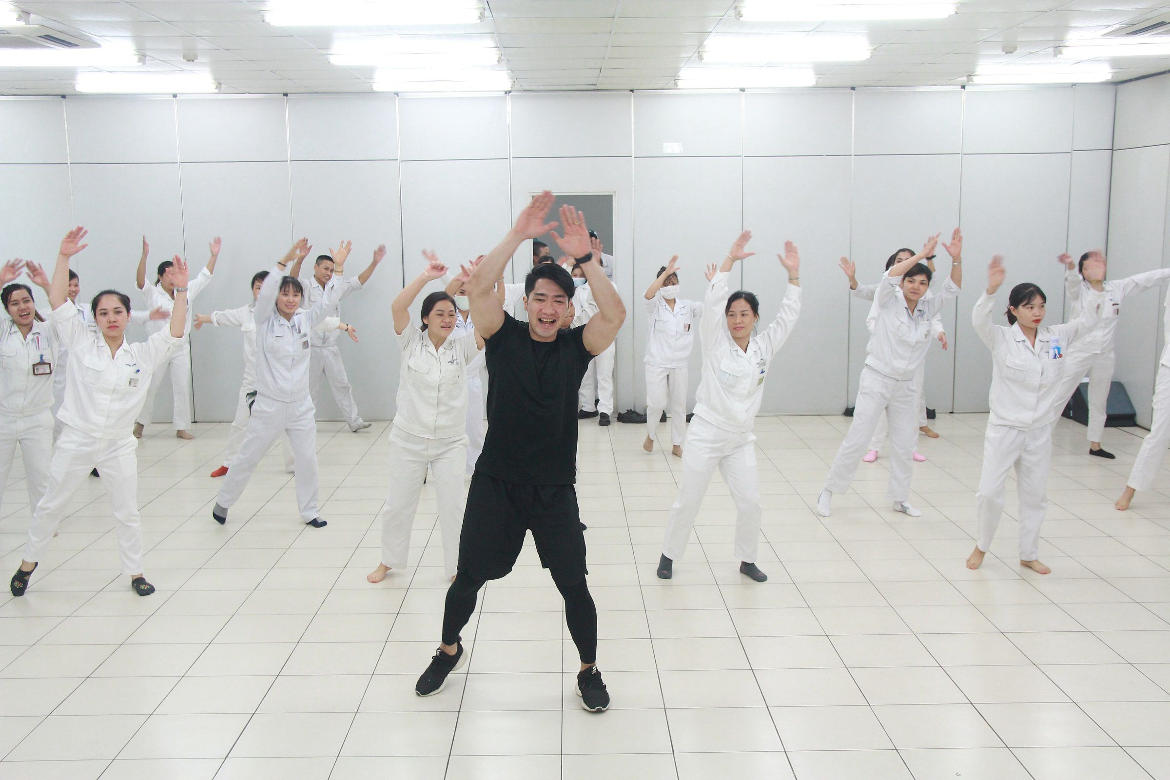 Đặc biệt lần này, CBCNV nữ đang mang thai cũng có những bài tập riêng để có một thể trạng mạnh khỏe và tinh thần sảng khoái.