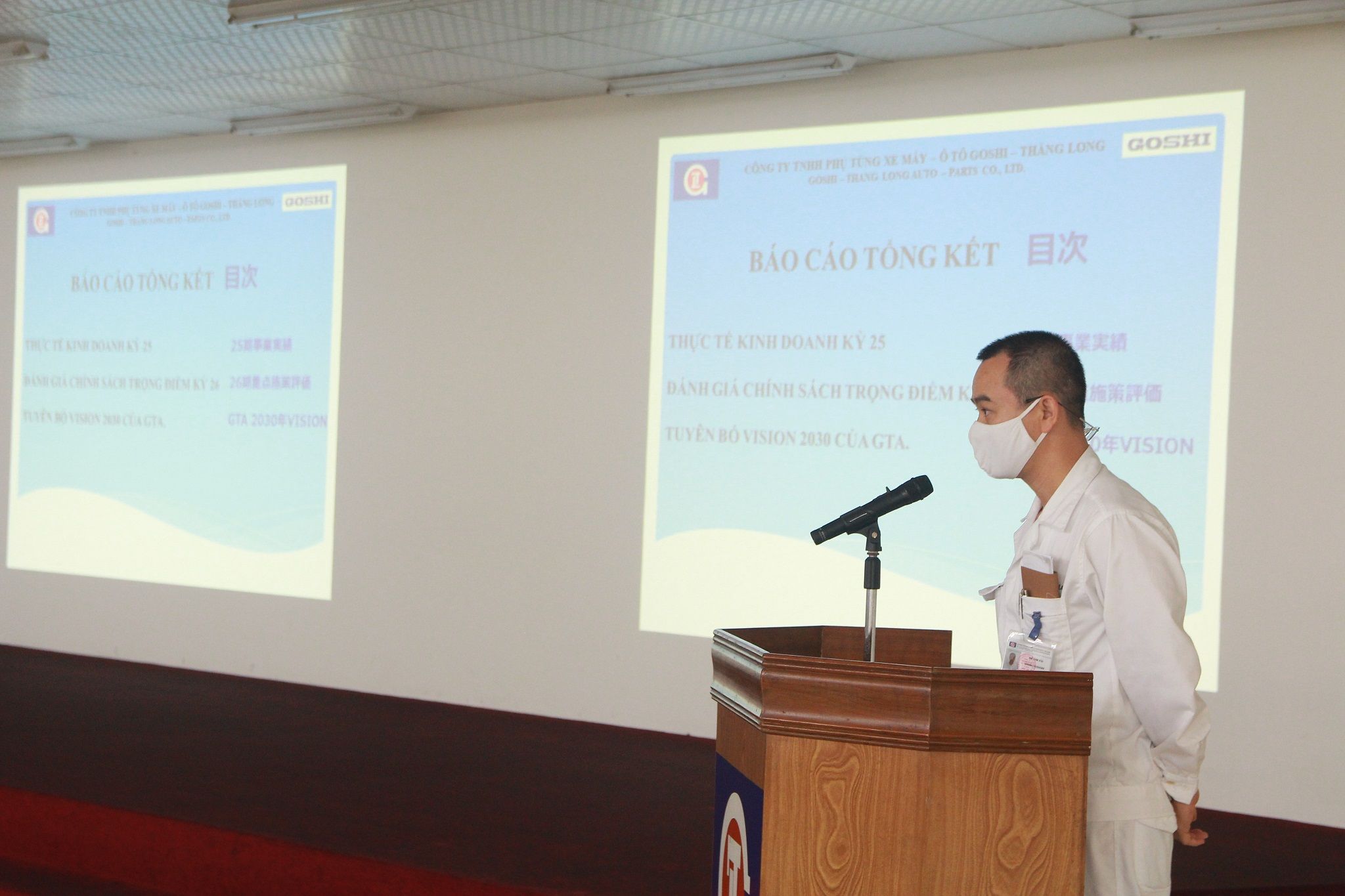 Ngày 25 tháng 3 năm 2021 (thứ 5), Công ty phụ tùng xe máy ô tô Goshi – Thăng Long (GTA) đã tổ chức buổi đánh giá Kế hoach Kinh doanh kỳ 26 và tuyên bố kế hoạch phát triển tầm nhìn: Vision 2030. Qua đây, Tổng giám đốc đã truyền tải thông điệp về KHKD kỳ 26 cũng như Kế hoạch tầm nhìn Vision 2030 đến toàn thể cán bộ công nhân viên của GTA.
